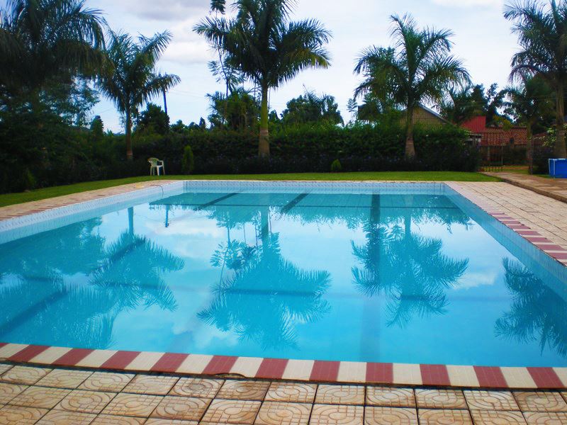 The clear, sparkling swimming pool provides hours of fun!
